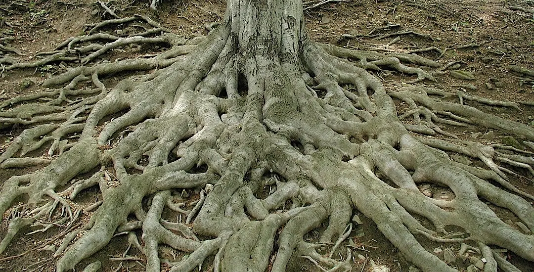 In vascular plants, the roots are the organs of a plant that are modified to provide anchorage for the plant and take in water and nutrients into the plant body, which allows plants to grow taller and faster. They are most often below the surface of the soil, but roots can also be aerial or aerating, that is, growing up above the ground or especially above water. Roots can be very fine like a thread or massive like those of the Sitka Spruce which, in an individual named “The Octopus Tree” at Trees of Mystery in northern California, has exposed roots over four feet (1.2 meters) thick.